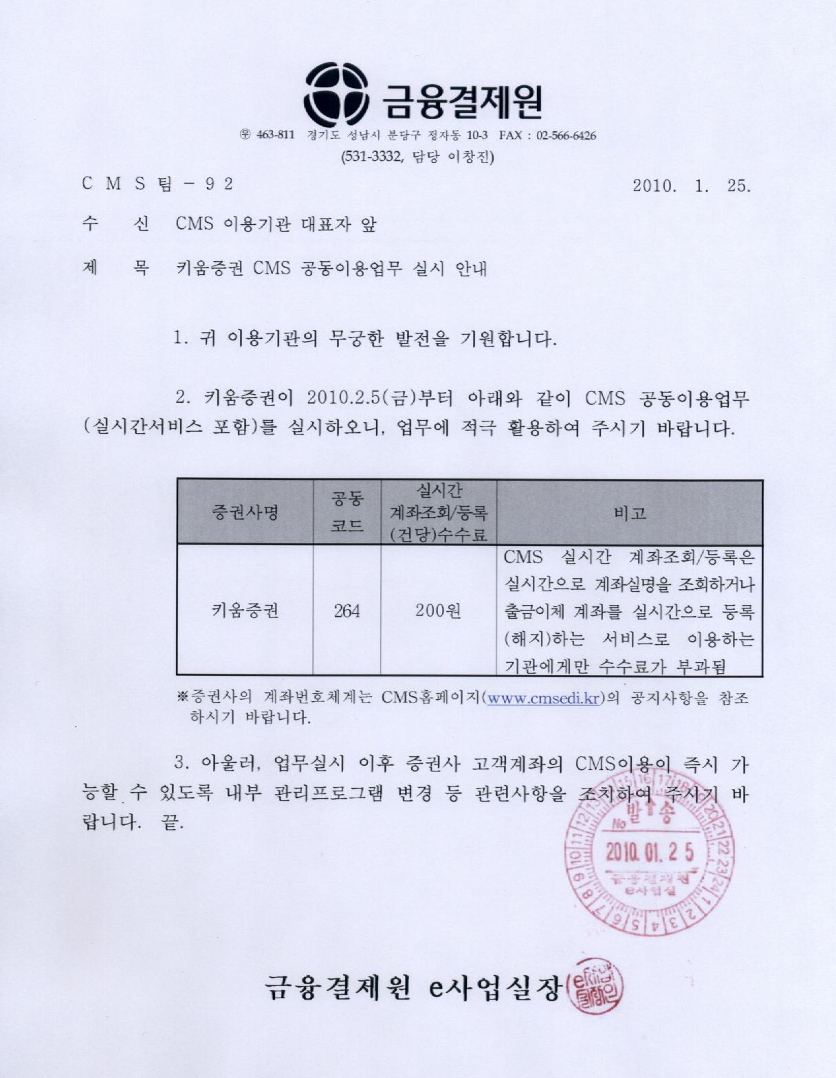 이전글금융결제원 CMS 시스템 교체 관련 송수신 일시 중단 안내2009.12.30